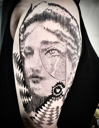 Optical artist in dotwork style